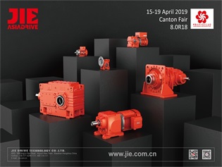 2019 China Export and Import Fair JIE Drive 8.0R18 Warmly Welcome to Visit JIE Drive for ?Gear Reducer, Motor, Frequency Conversion Gear motor and Transmission System, Drive System, Control System, etc the Total Drives Solutions