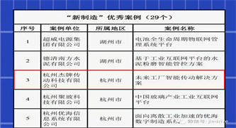 12月29日,2021年浙江省數字經濟"五新"優秀案例公布,杰牌“未來工廠智能傳動解決方案”榜上有名