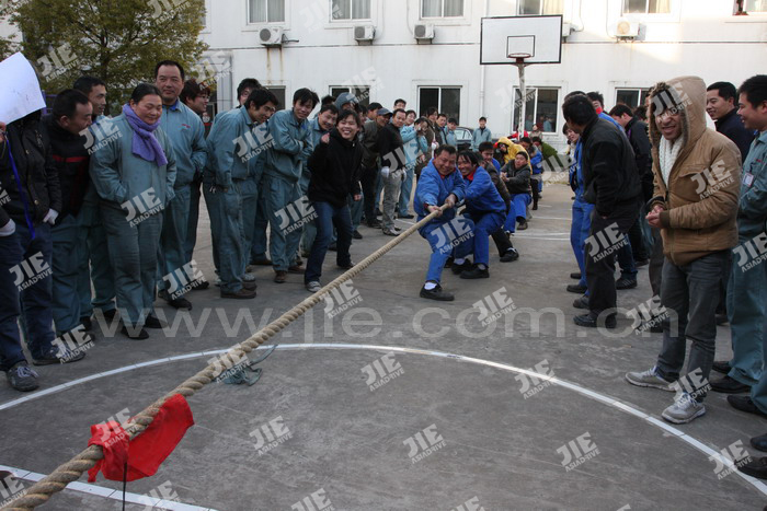 2010年12月31日,“杰牌控股慶元旦迎新年員工拔河比賽”在集團公司籃球場舉行。共有十支隊伍參賽,經過四輪精彩決逐,萬杰公司箱體線、科杰建機工業部、傳動公司制造部分獲冠、亞、季軍。通過比賽活動,不僅豐富了員工的文化生活,同時也大大提升了團隊凝聚力和向心力。
